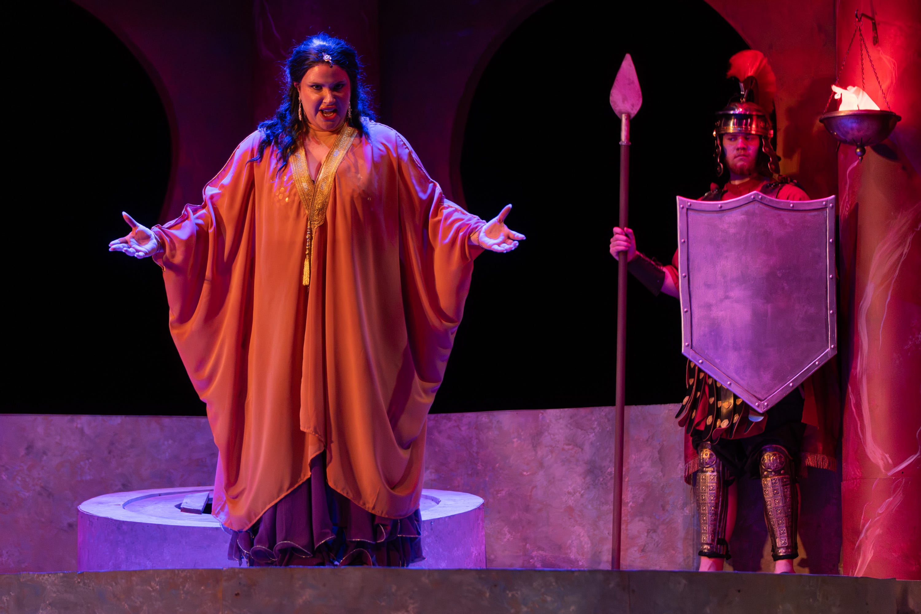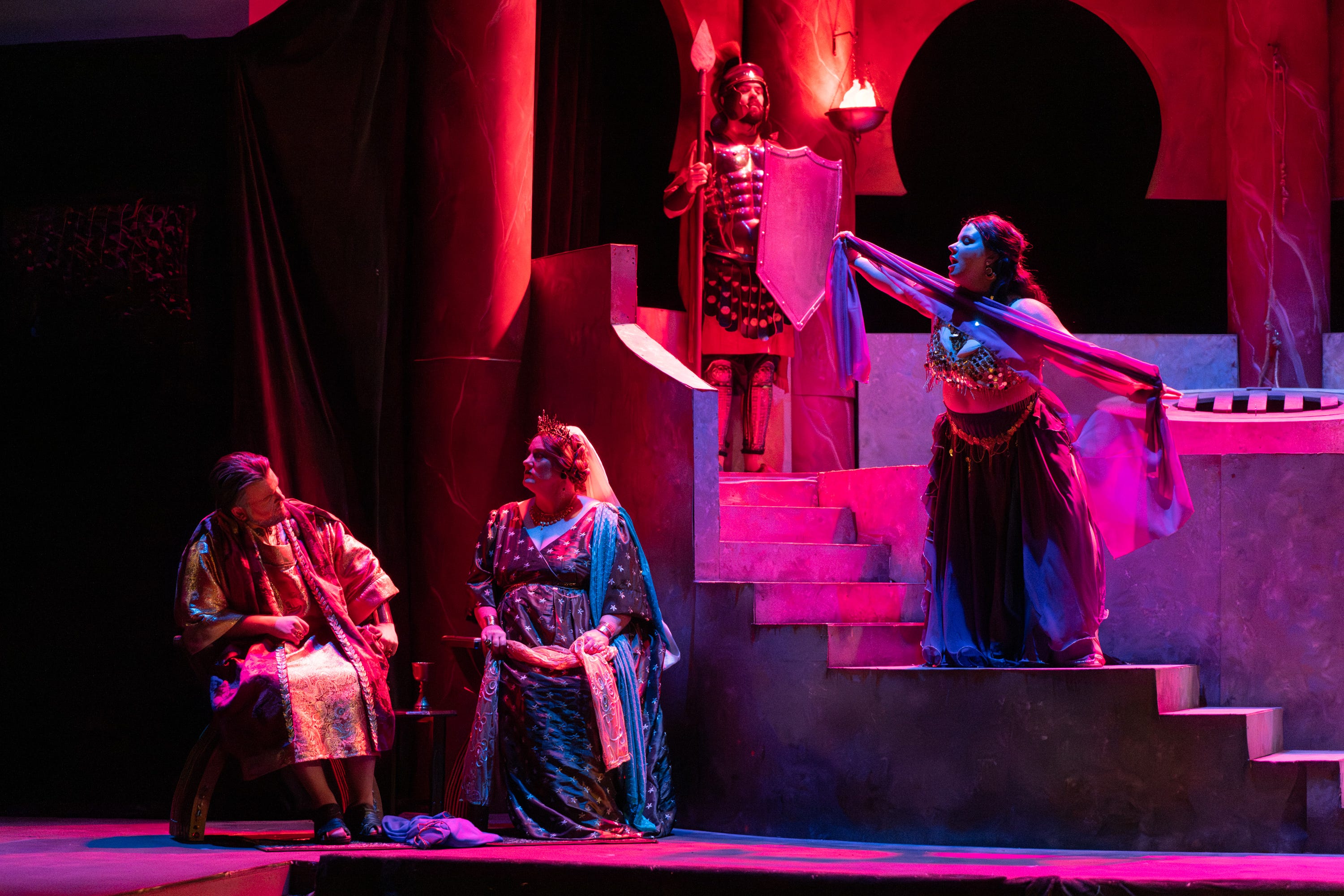 It also limited the impact of the “Dance of the Seven Veils,” although choreographer Maggie Nold’s addition of two dancers (Audrey Sondag and Emma Wittenauer) to accompany Salome added visual interest.